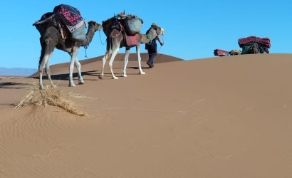 Le désert au Maroc est le lieu idéal pour une première randonnée, en famille ou entre amis Avec notre équipe de sahariens, votre randonnée chamelière se déroulera au rythme de la caravane des dromadaires.